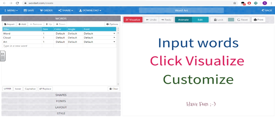 3.  Formabilii accesează (www.tagul.com sau https://wordart.com/).