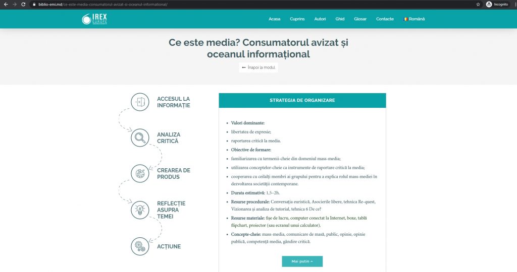 Avem convingerea și speranța că utilizarea Manualului și a Ghidului va contribui eficient la creșterea nivelului de educație mediatică și cultură informațională din Republica Moldova, precum și la promovarea cetățeniei active.
