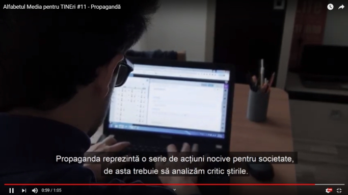 - Vizionați filmulețul „Alfabetul media pentru tineri – Propaganda”, accesând linkul https://www.youtube.com/watch?v=_PszU7sBSgw .