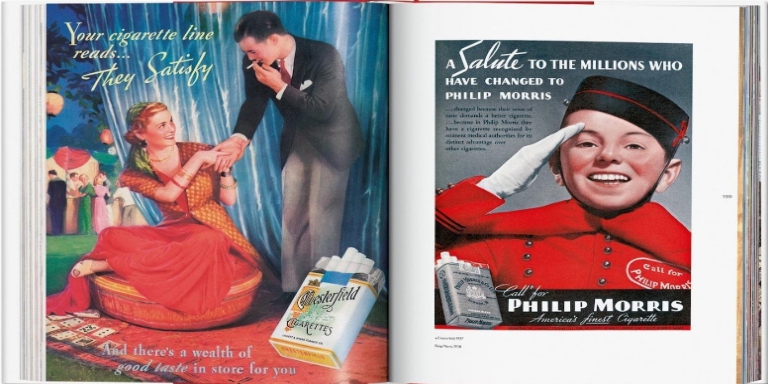 (O reclamă la Chesterfield din 1937 și una la Philip Morris din 1938)